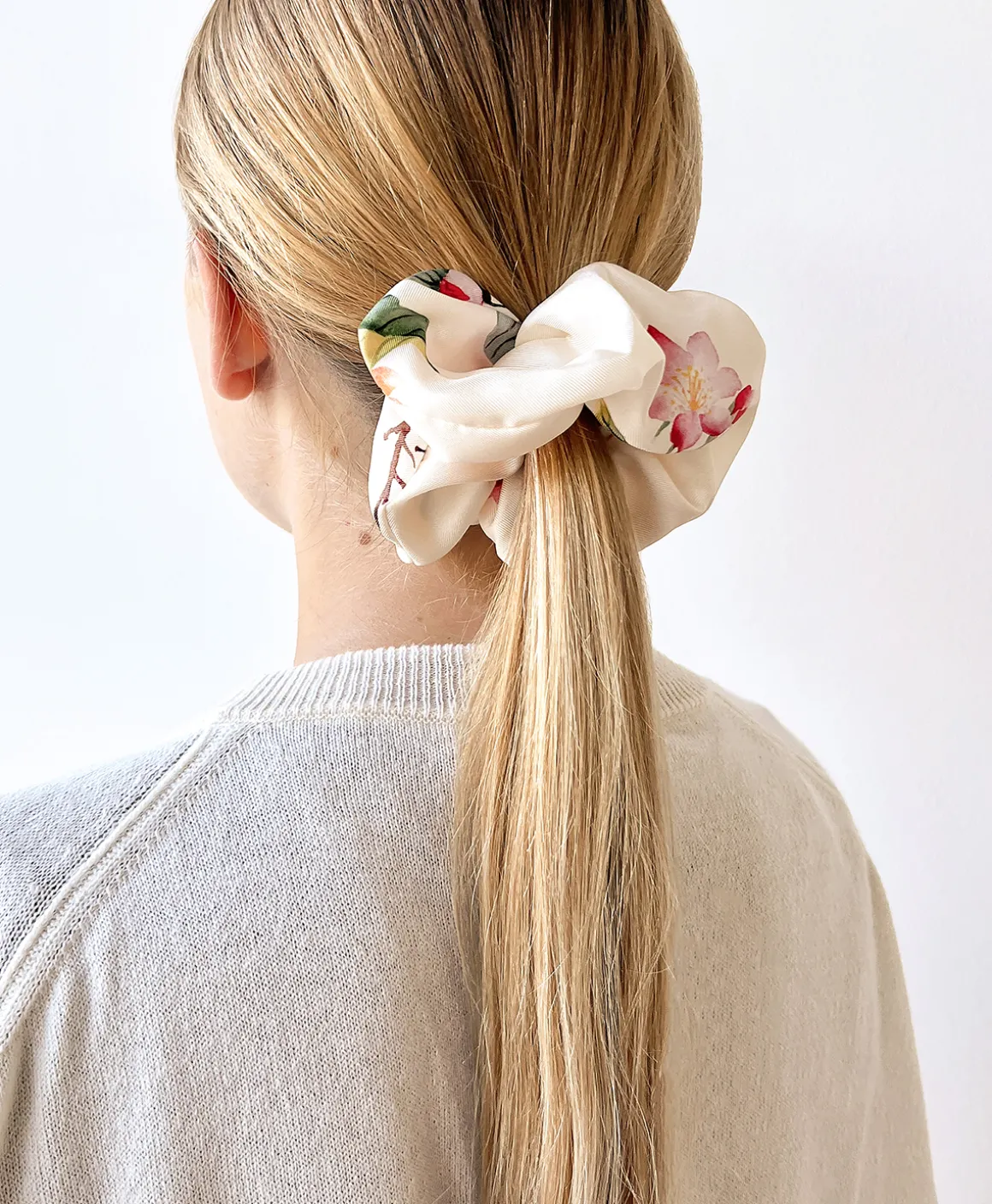 Scrunchie versatile in seta stampata. Abbinalo alle nostre stampe per creare un outfit unico. Made in Italy.