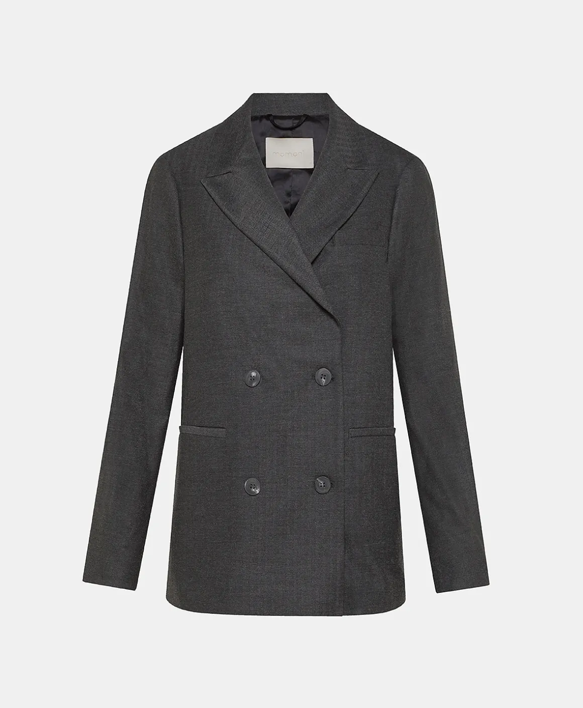 Giacca in chevron di misto viscosa e lana stretch. Modello carry-over Momonì, dalla linea sartoriale, con apertura a doppiopetto, collo a lancia, tasche a filetto e pochette. Spacco sul centro dietro e costruzione interamente foderata.