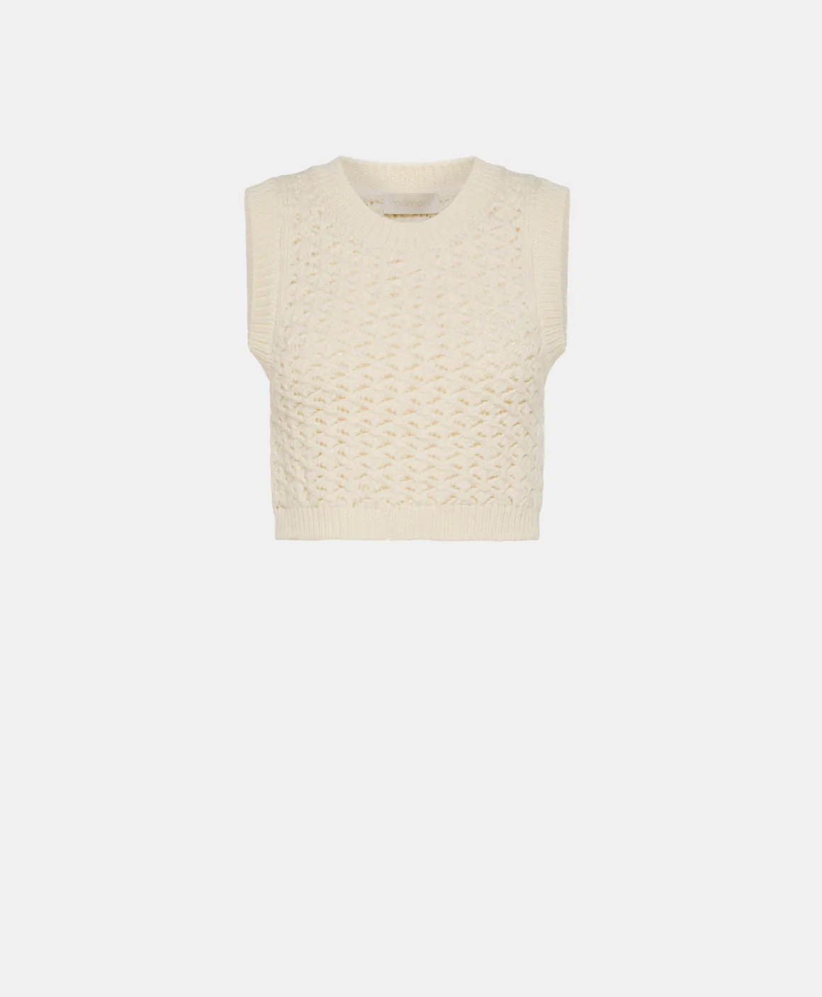 Gilet in filato di Lana Vergine con punto a crochet. Adatto per essere indossato anche sopra fluidi abiti, realizzato in punto pizzo. Made in Italy