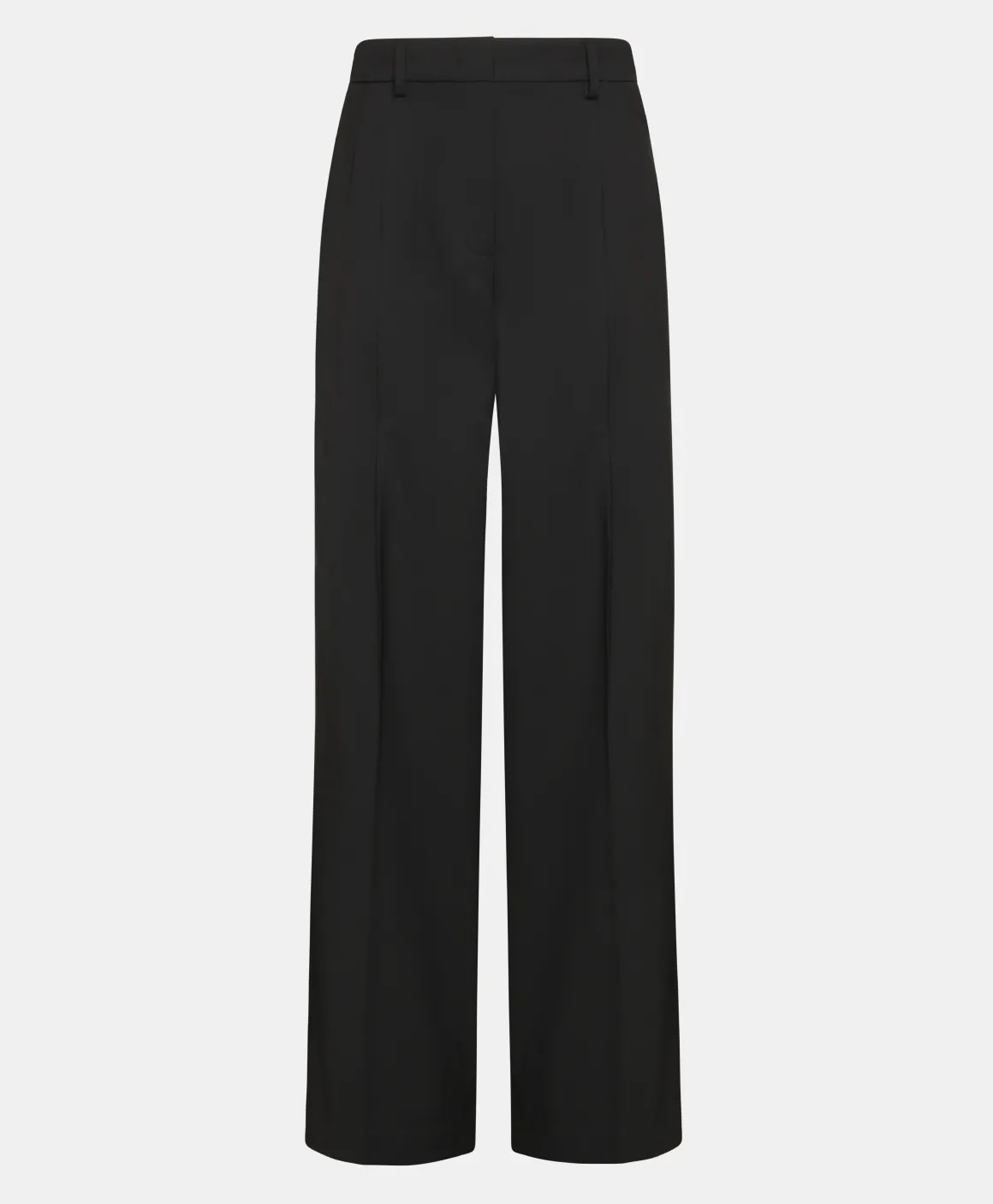 Pantalone lungo gamba ampia in fresco di lana bi-stretch. Fit rilassato ma elegante, con pinces sul davanti e tasche inserite sul fianco. Cinturino costruito con passanti, apertura con zip e bottone.
