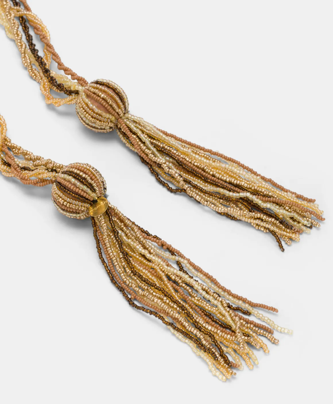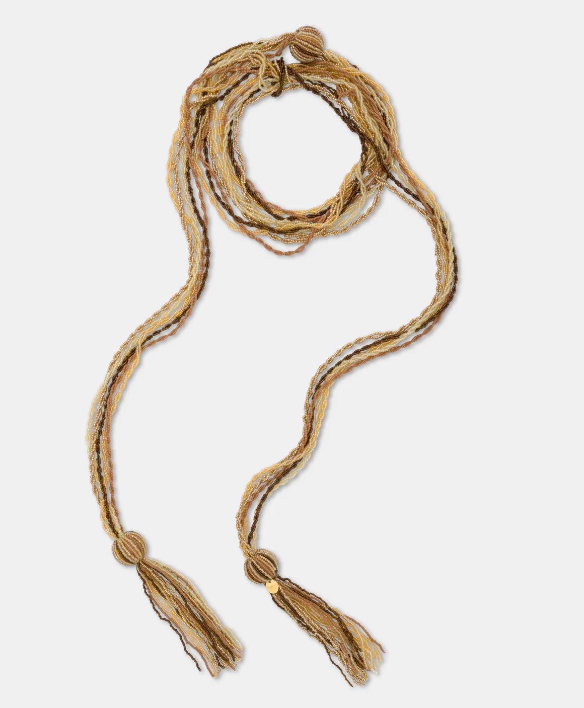 Collana lunga a sciarpina con finali di nappine di perline vetrate multicolor a contrasto. Indossabile sciolta lunga sul…