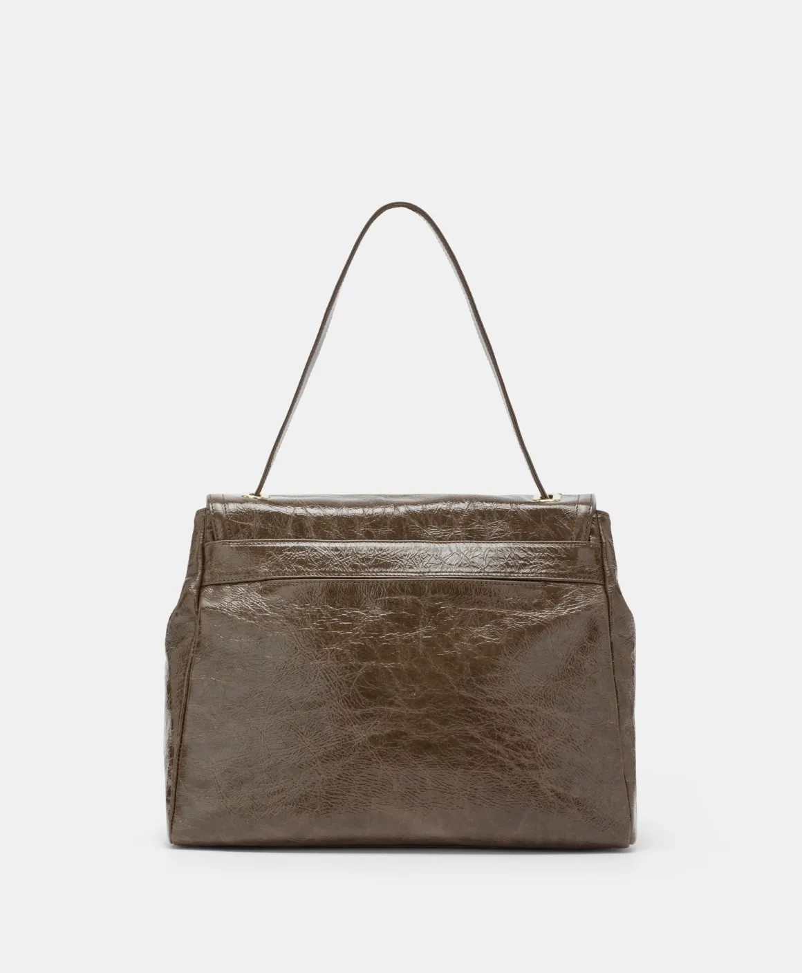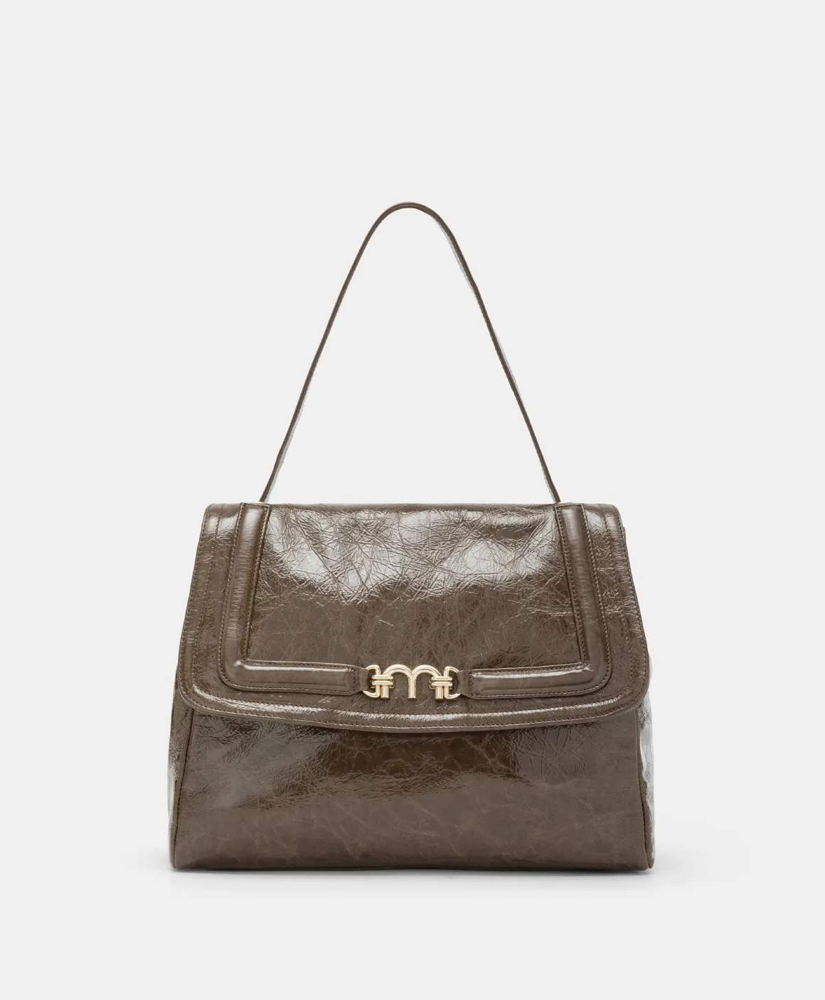 Spirito moderno in una nuova rivisitazione della borsa iconica, realizzata in pelle con trattamento naplack. Patta con raffinato morsetto dorato che sintetizza il logo Momonì, manico a spalla che scompare all’interno degli occhielli a vela e tracolla in pelle removibile. Piedini sul sottoborsa. Costruzione foderata. Made in Italy.
