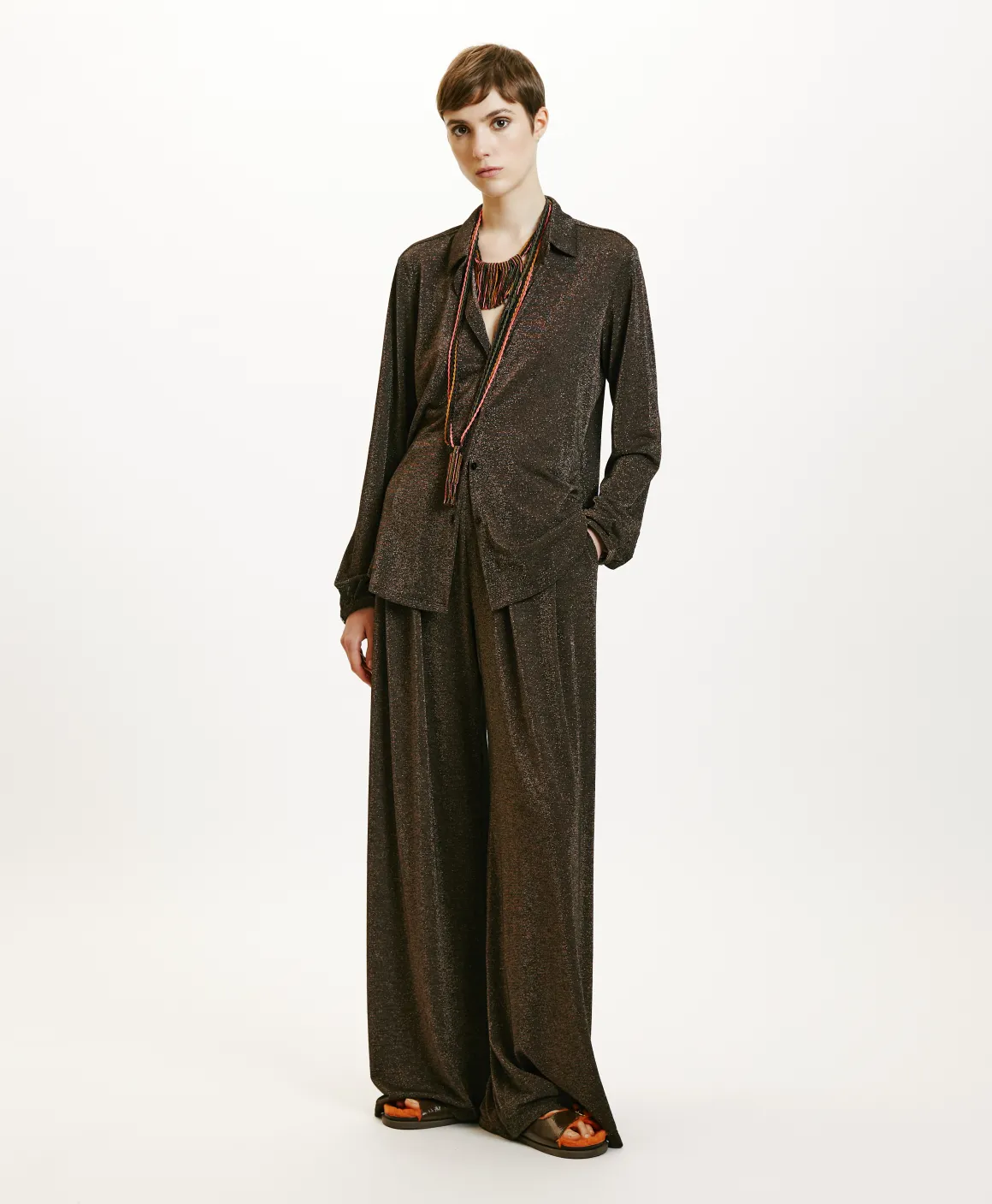 Camicia carry-over Momonì, presentata nella versione lurex. La Meudon ha una vestibilità confortevole sottolineata dal…