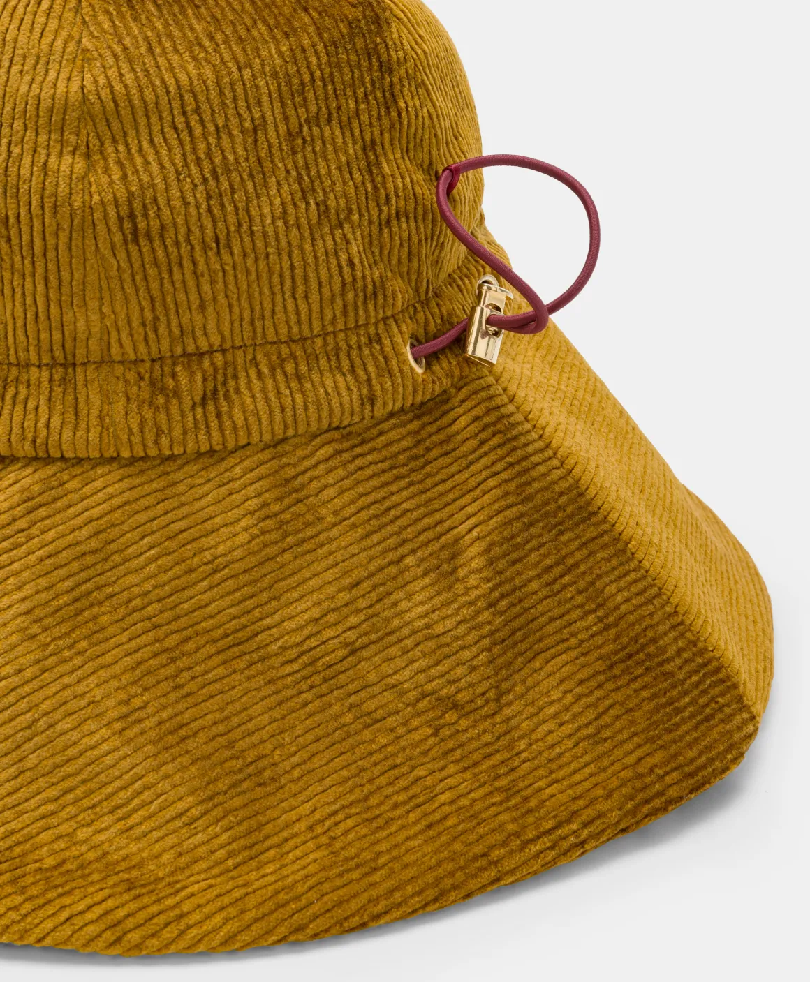 Moderno cappello che attinge dal mondo antipioggia e “pescatora” per il design e lo coniuga ad un elegegante e lucido velluto a coste in stile Momonì. Tesa larga, dettagli tecnici come elastico e ferma corda, costruzione foderata. Made in Italy.