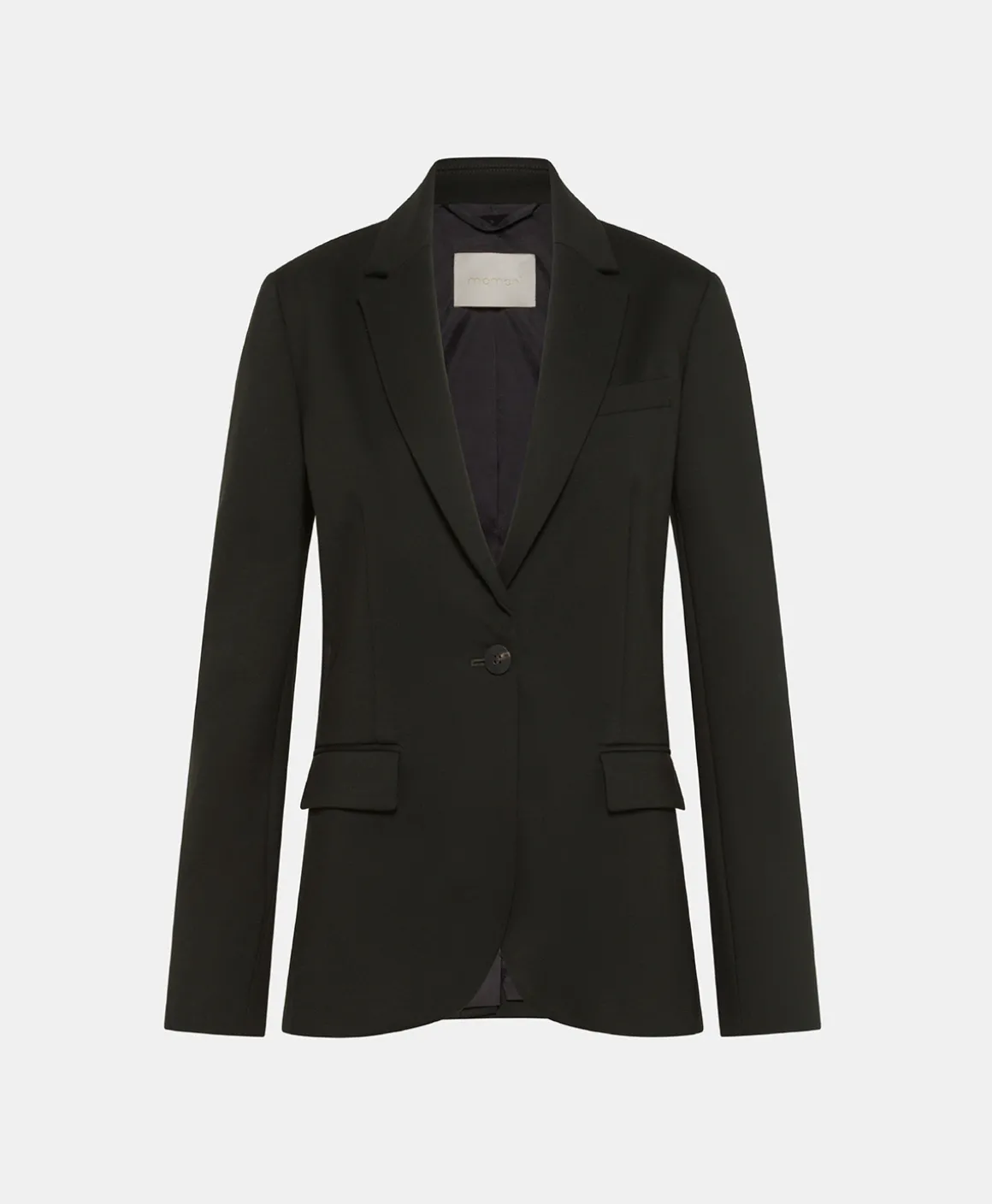 Giacca asciutta in confortevole tessuto punto Milano di misto viscosa. Confortevole e quotidina, questa giacca presenta tasche a doppiofiletto con pattina, taschino pochette e piccolo collo a reveres. Mordiba spallina interna e costruzione foderata. Chiusura ad un bottone e spacco sul centro dietro.