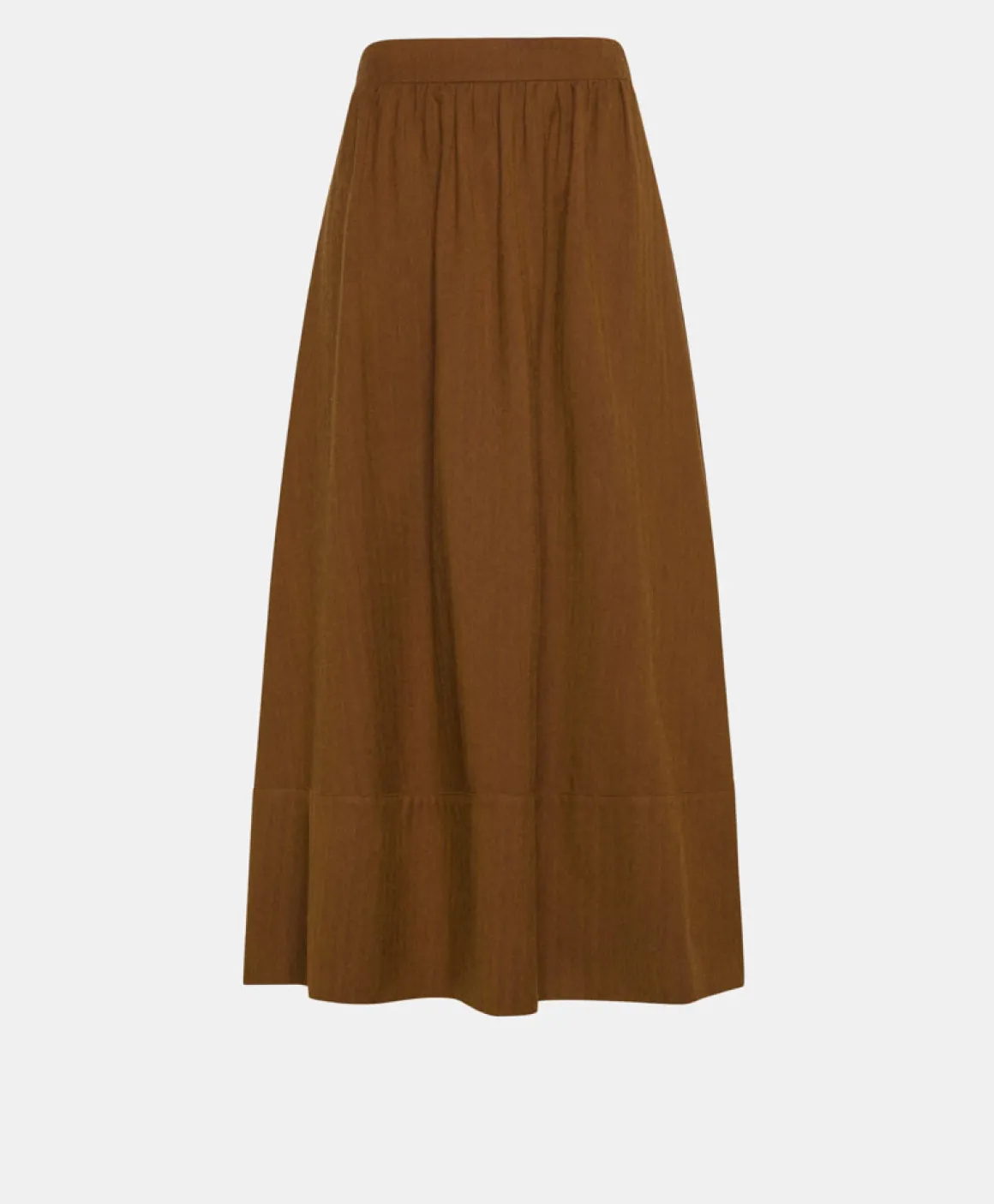 Gonna costruita con cinturino in vita, apertura con zip laterale , tasche inserite nel fianco. Realizzata in chevron di misto lana e cotone presenta un ricco arriccio sul davanti e sul dietro, con balza sul fondo.