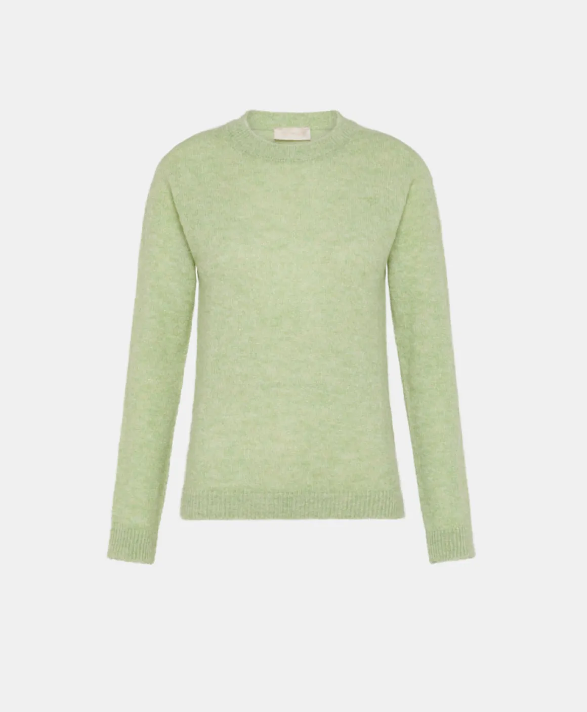 Maglia girocollo in misto Alpaca con un tocco di lurex, dal volume regolare. Rifiniture con costine. Made in Italy.