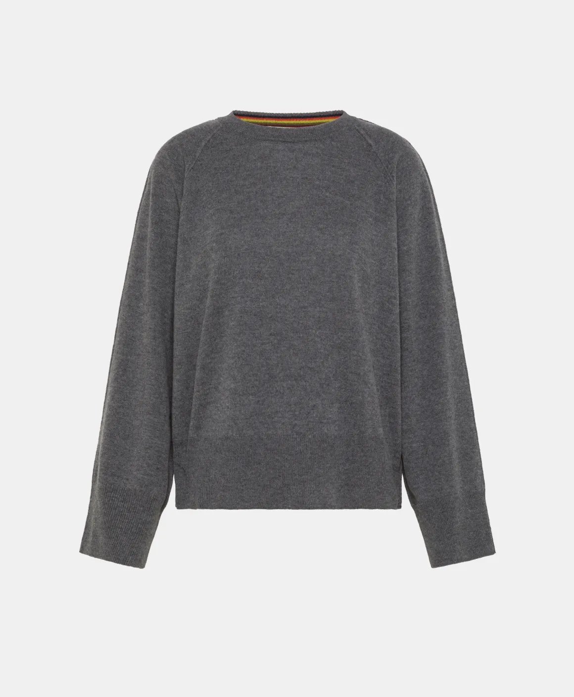 Maglia girocollo di lana merinos misto seta cachemire. Volume morbido con manica raglan e polsi larghi arrichhito con cu…