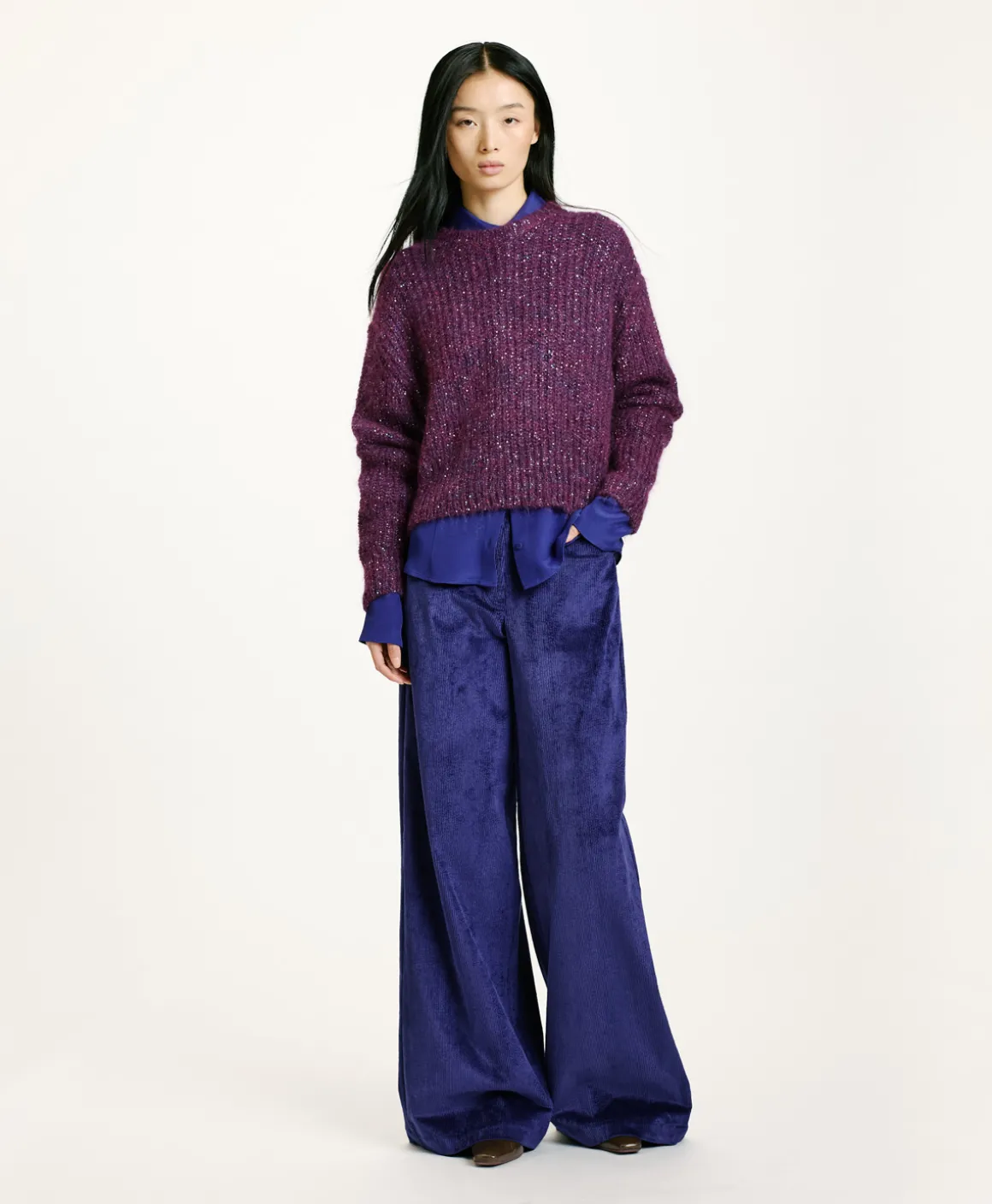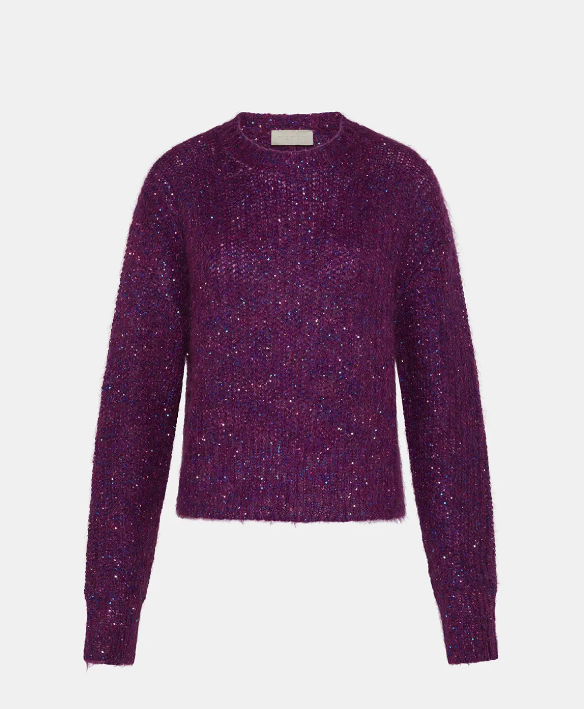 Maglia in mohair con paillettes. Vestibilità morbida, girocollo, maniche lunghe. Made in Italy.