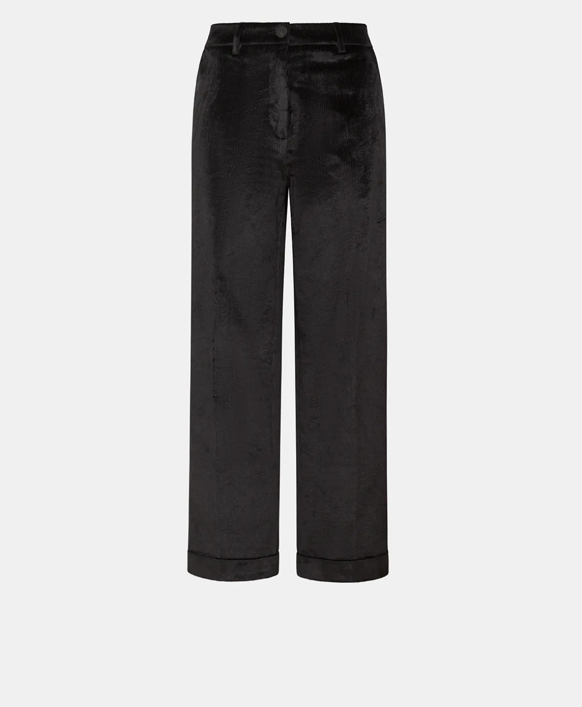Pantalone lunghezza cropped con risvolto in confortevole velluto a coste stretch leggermente lucido. Dalla linea sartori…