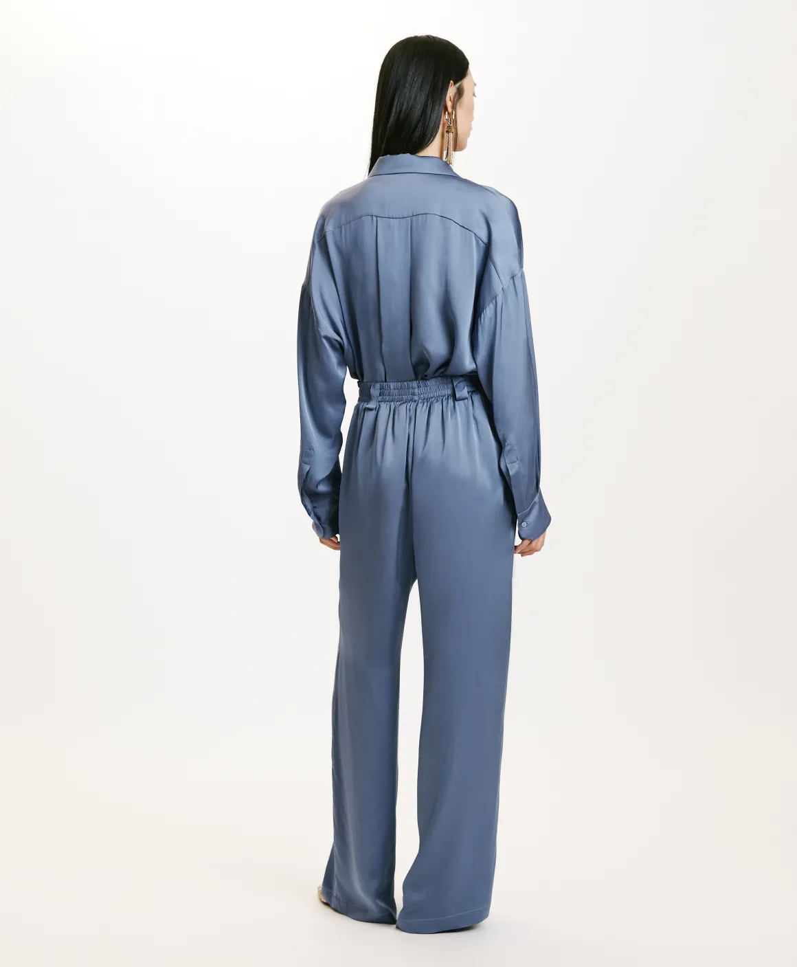 Pantalone in pura seta lavata. La silhouette di Lanzarote, ormai un’icona Momonì, è ampia e ariosa, con pieghe frontal…