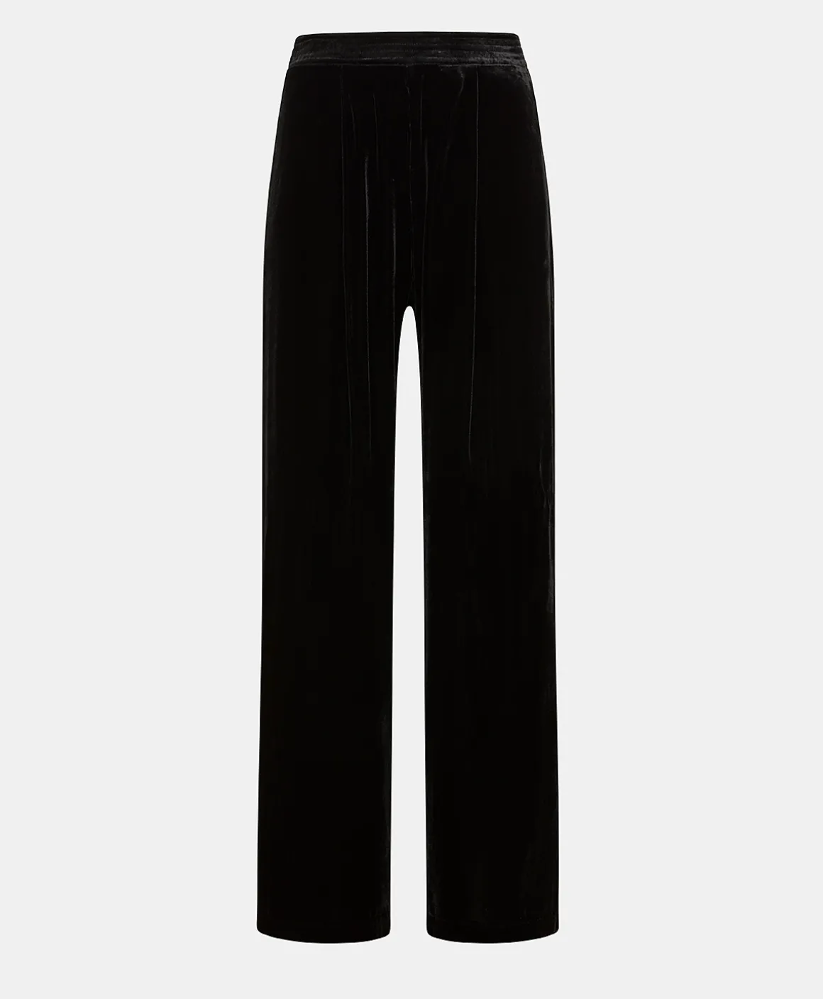 Pantalone lungo fluido in prezioso velluto di seta e viscosa. Ampia gamba con profonde pieghe centrali, cinturino alto c…