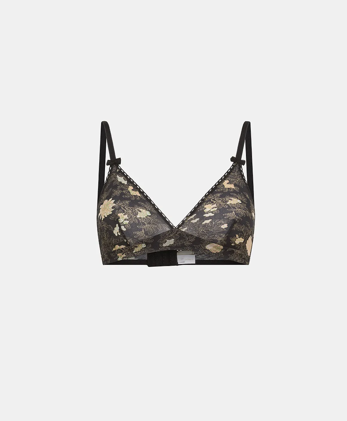 Reggiseno carry-over realizzato in morbida charmeuse stretch nelle esclusive stampe Momonì. L’avvolgente forma a triang…