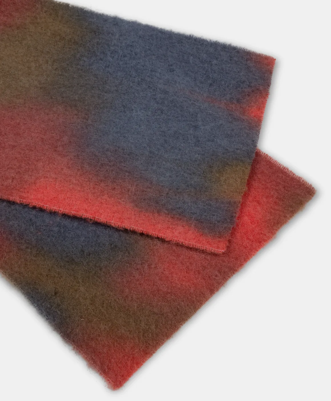 Sciarpa in soffice velour garzato di baby alpaca e lana, calda e morbida, sfumata con lavorazione manuale artiginale in quattro colori. Senza frangie. Made in Italy.
